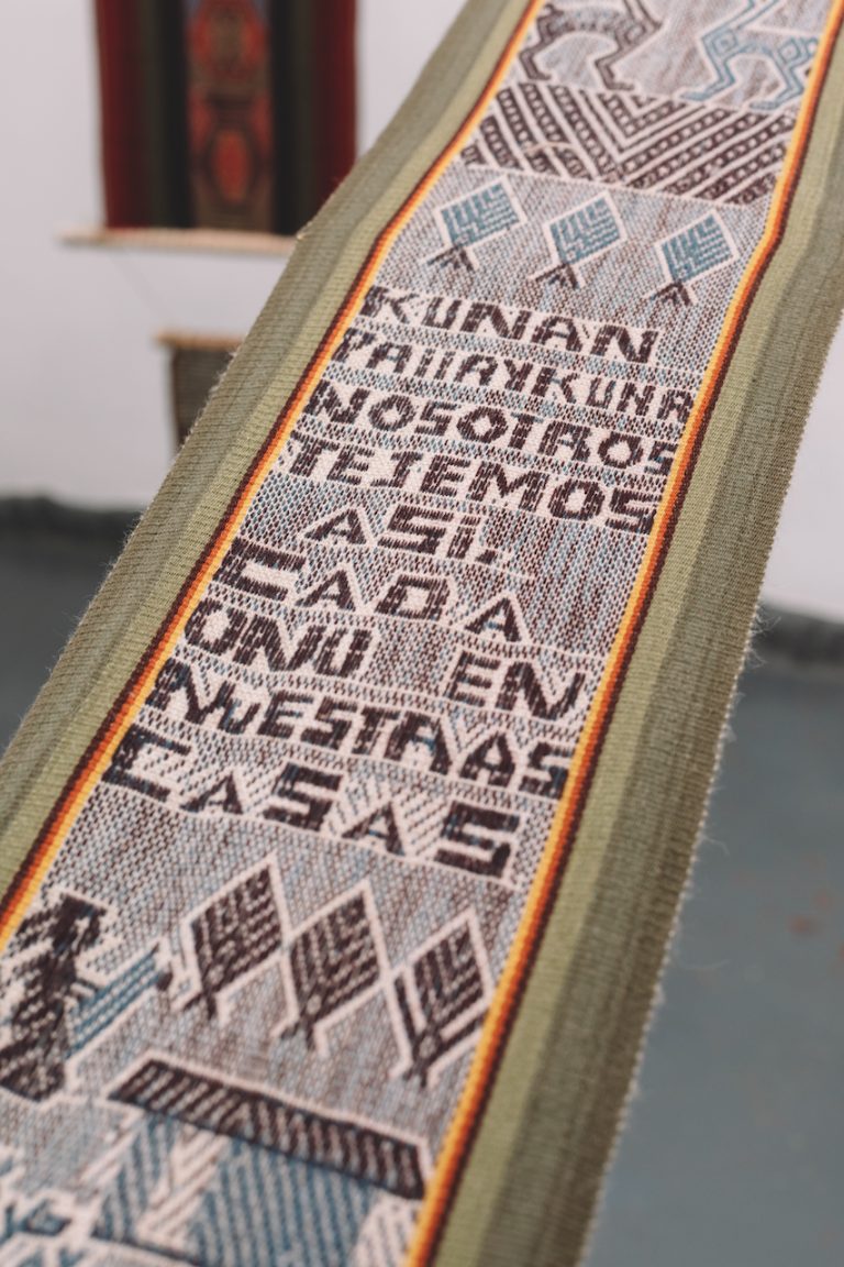 Ser Pallay has been a learning process for all the agents involved: artists, curator and gallery. A desire for dialogue and transparency, as well as a concern for the project to "act" in the real world in accordance with what it was proposing at a discursive level, guided each of the project's decisions. In this line, the most important bet was to give prominence to the knowledge and interests of the weaving artists, as well as to involve them in most of the decisions related to exhibiting in a commercial contemporary art gallery. This seemingly symbolic gesture gave rise to a series of profound redefinitions, both in the way collaborative relationships between academically trained artists and traditional artists in our milieu have normally been conceived, as well as in the aesthetic hierarchies that differentiate art from craft. The impact that Ser Pallay will have on its artists has yet to be evaluated. However, at first glance it is evident that the space for the exchange of knowledge generated by the project has produced mixed and collaborative vocabularies that position the pallay as a powerful tool to account for the present.