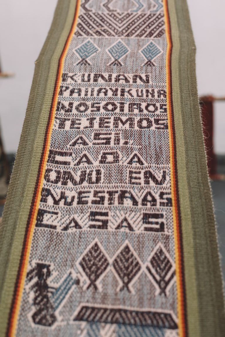 The main objective of Ser Pallay has been to generate a space for the exchange of knowledge, collaboration and finally co-authorship among artists who, although they have dissimilar origins and training, share a real knowledge about the practice of weaving and Andean textiles. The Andean textile is made up of two inseparable elements: the pallay and the pampa. The pallay, whose more exact translation into Spanish would be "textile design", is part of a complex vocabulary through which Andean communities express their ways of thinking and feeling in various textile pieces that accompany their daily lives: the lliklla, the poncho, the chumpi, the chuspa, among others. The pallay is only possible thanks to its complementary opposite - a plain and monochromatic fabric where no design has yet "sprouted" - called pampa. Currently, Andean textiles are mainly created on the backstrap loom, a tool that is integrated into the weaver's body and is characterized by a simple and portable design.