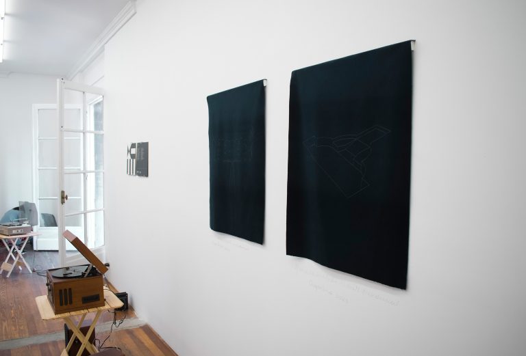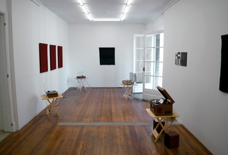 The unprecedented sound installation País con futuro by José Luis Martinat uses fragments of the homonymous vinyl, a collaboration with the Peruvian publishing house Meier Ramirez. This 12-inch vinyl features fifty locked grooves, closed loops that constantly reproduce electoral slogans drawn from Peruvian political history. The album seeks to convey feelings of hope, strategically repeating words such as "change" and "transformation". The robotic voice in the installation homogenizes the texts, questioning the construction of the discourse and highlighting its mechanicity in the political arena. Martinat, as a Peruvian migrant in Sweden, uses his work as a means to process and reinterpret political and social complexity, offering a critical reflection on the vacuity of political discourses. The installation invites viewers to confront the depoliticizing effect of an apparently empty discourse.