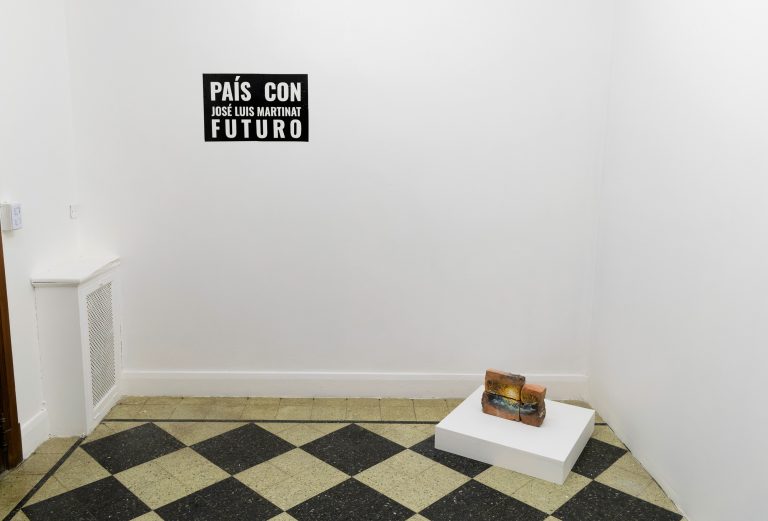 The three-brick installation El juicio final: Los elegidos (2021), establishes a dialogue with the triptych "El juicio final" (Catedral de Lima, 1625-1630) by Vicente Carducho, connecting the precariousness of construction materials with the religious imaginary of colonization. Martinat questions the relationship between religious values and economic debts in Latin American countries, raising questions about the capitalist system and its religiosity.